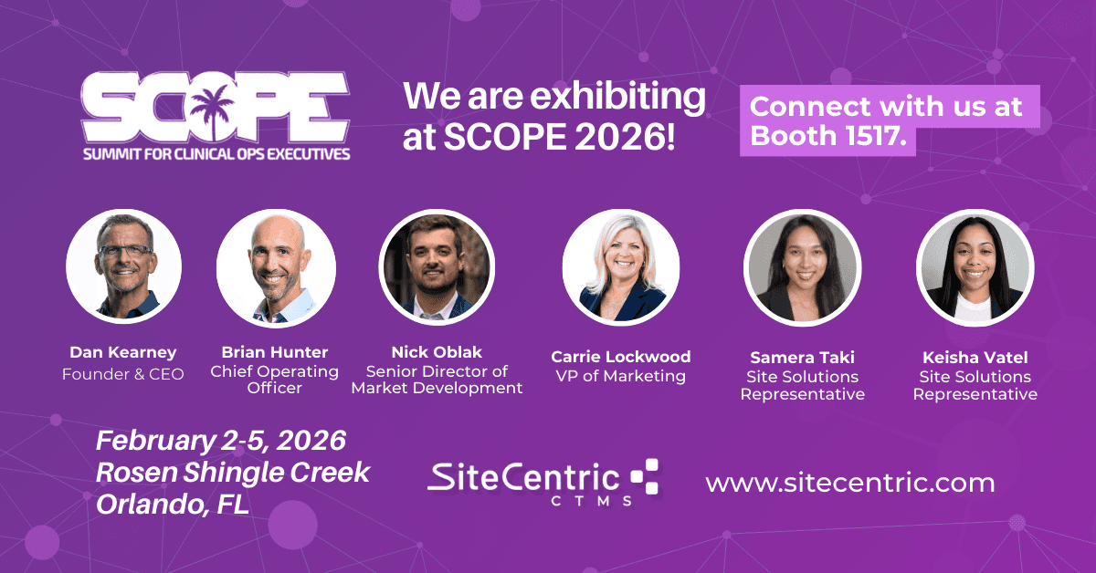 Get SiteCentric CTMS updates, product releases, and site-focused insights straight to your inbox.